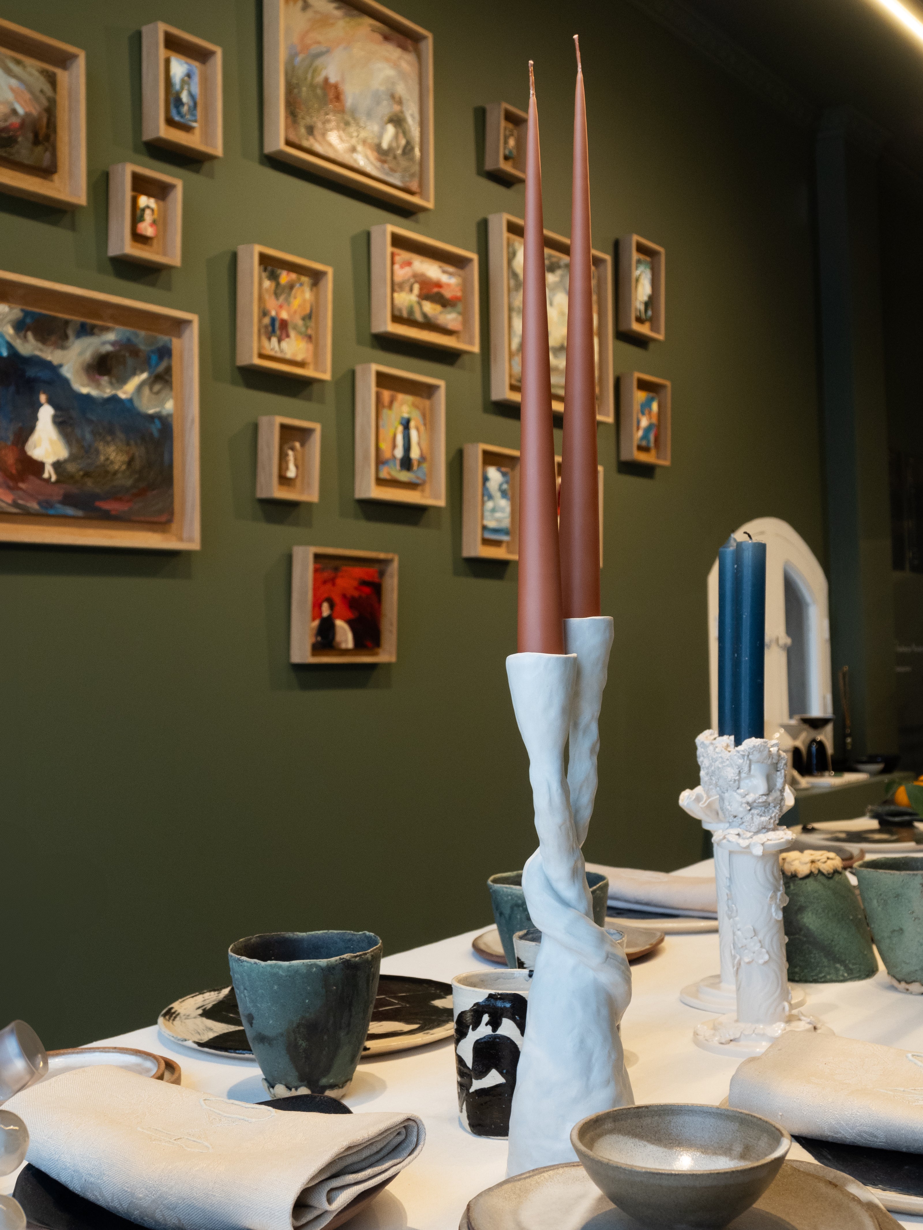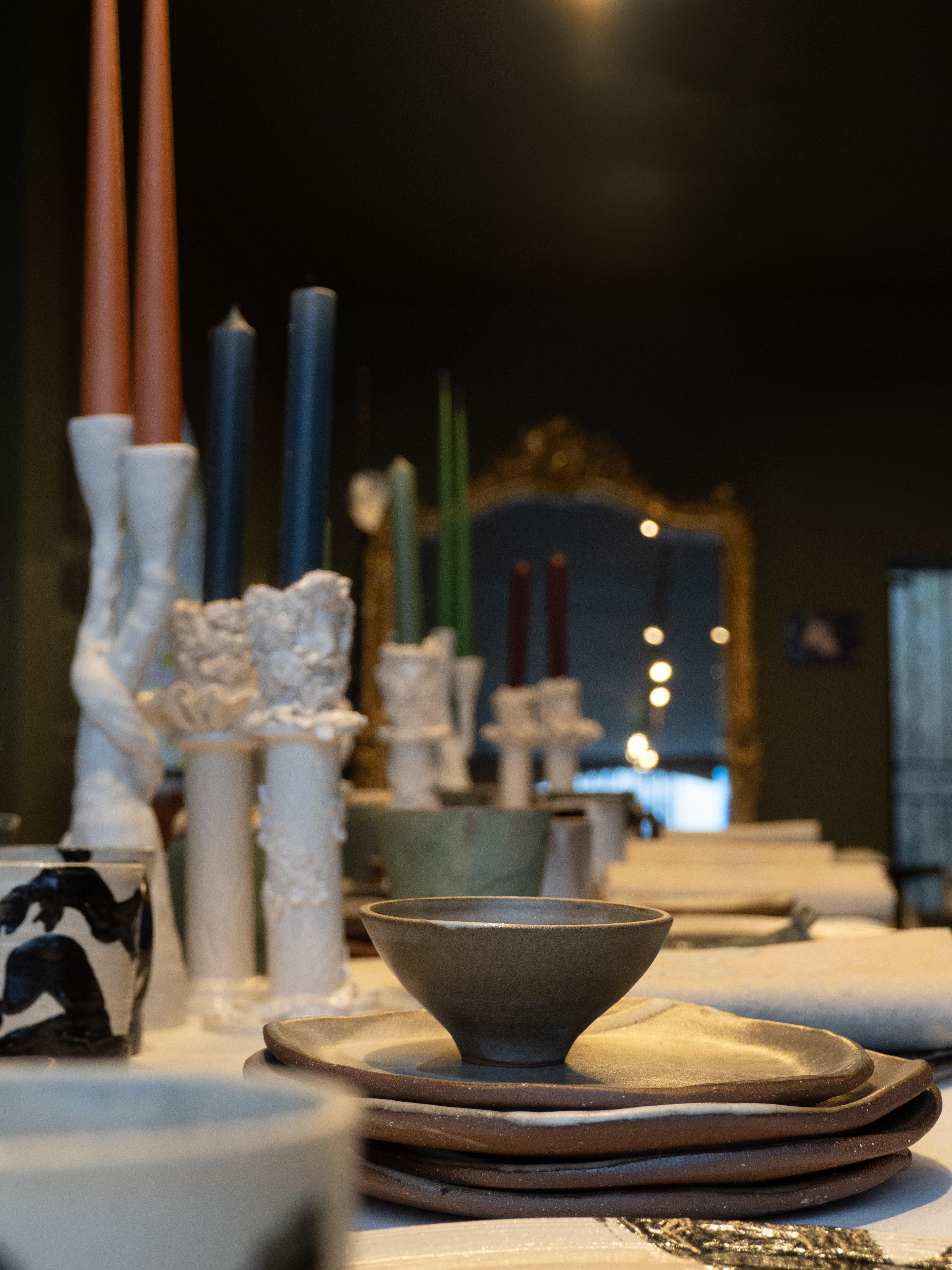 Parallèlement, j’ai souhaité explorer le contraste entre la robustesse du grès et l’élégance des objets d'art de la table, qui, traditionnellement, sont souvent associés à une certaine légèreté, voire à une fragilité. C’est ce dialogue entre ces deux mondes — celui de la rusticité du grès et celui du raffinement des objets destinés à sublimer la table — qui a nourri ma réflexion. Mon objectif était de créer des pièces qui, tout en étant ancrées dans une matérialité forte, conservent une certaine finesse et une dimension esthétique qui les rendent parfaitement adaptées à l'univers de la table, tout en apportant une touche d'authenticité.